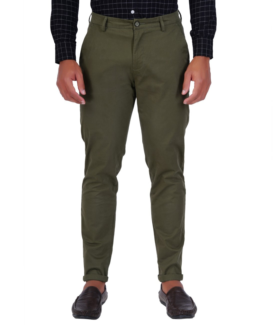 C&S Olive Green Slim-Fit Trouser