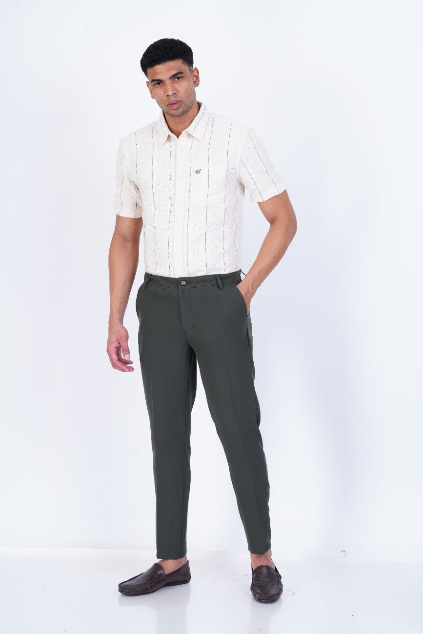 C&S Forest Green Slim-Fit Formal Trouser