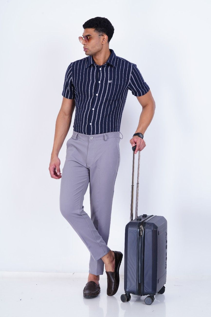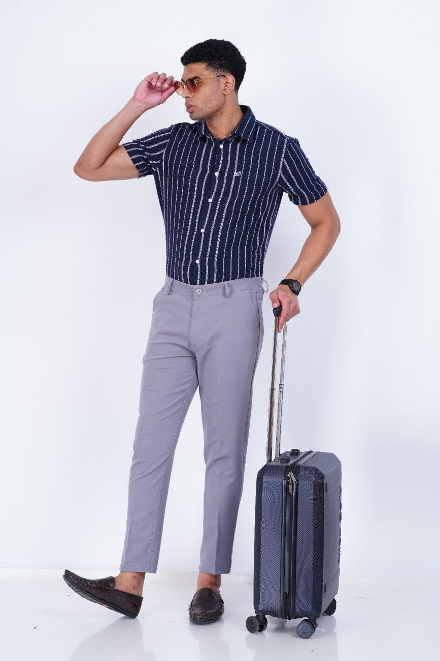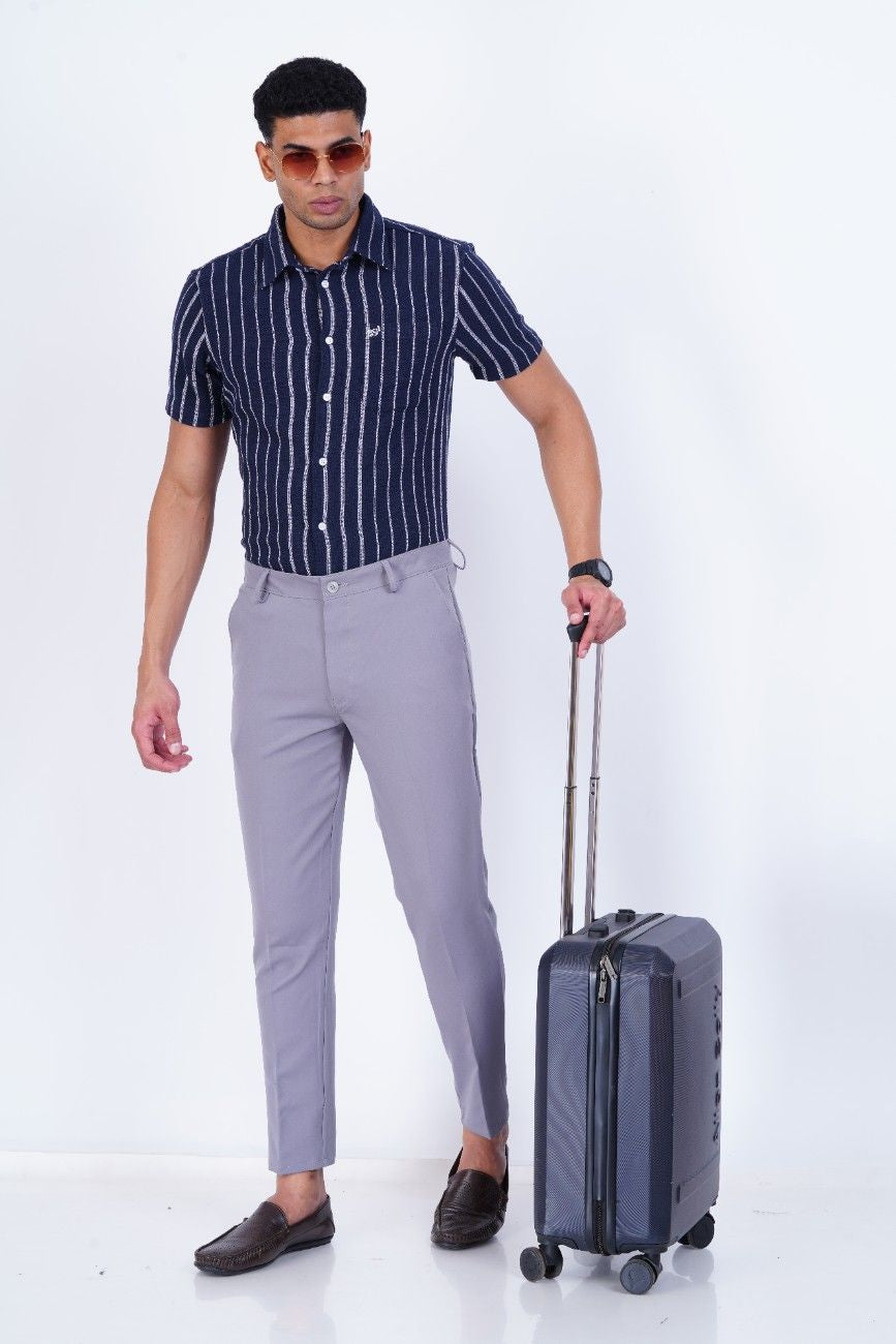 C&S Cool Grey Slim-Fit Formal Trouser