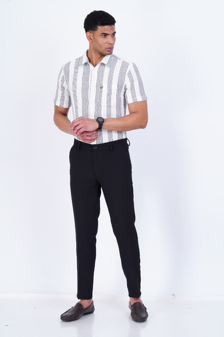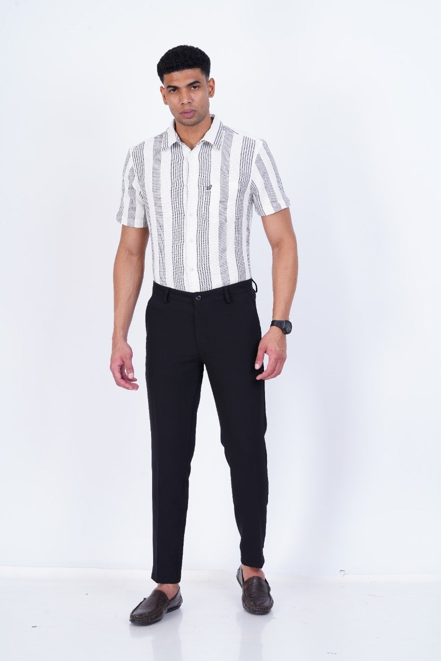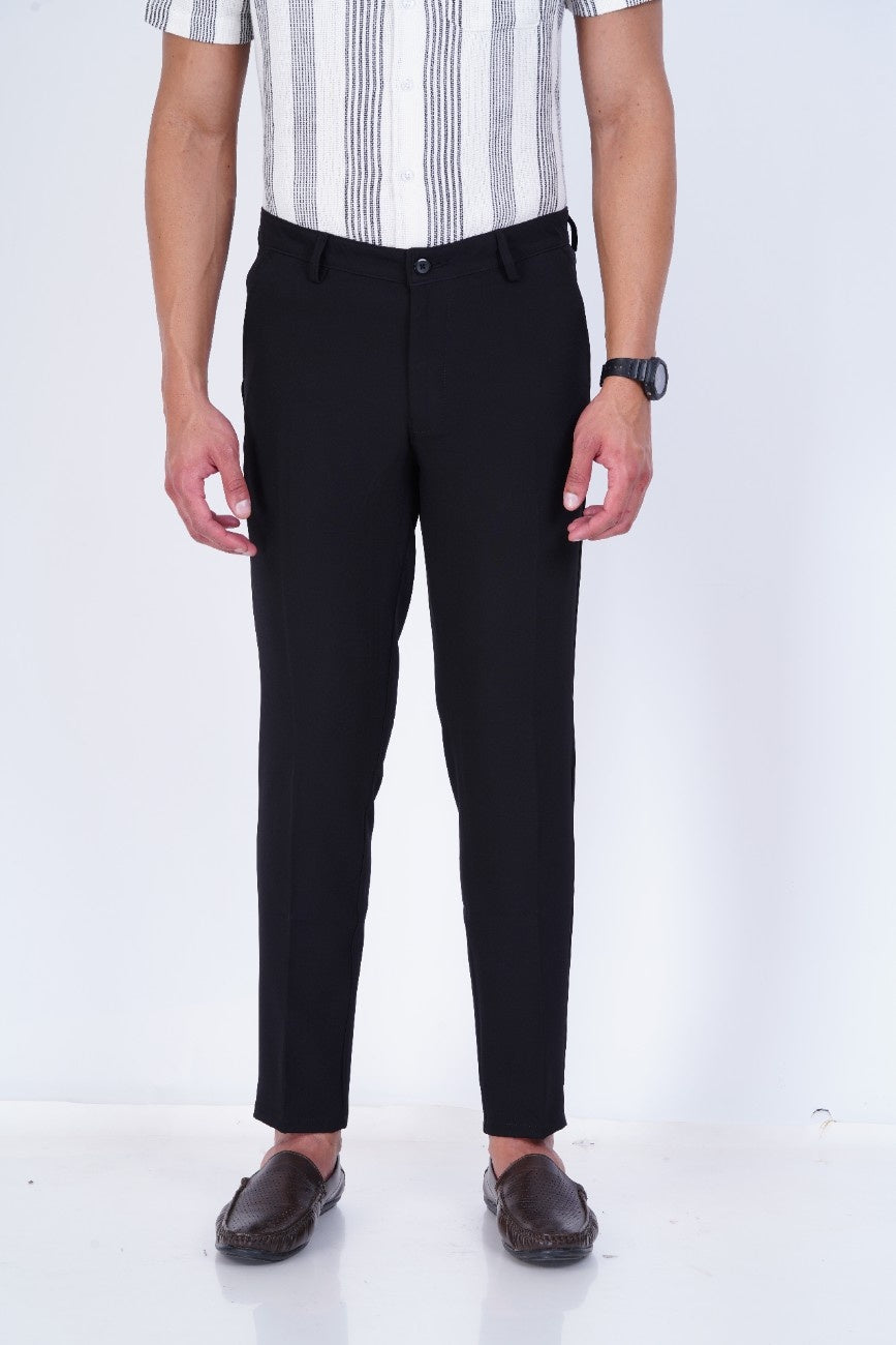 C&S Classic Black Slim-Fit Formal Trouser