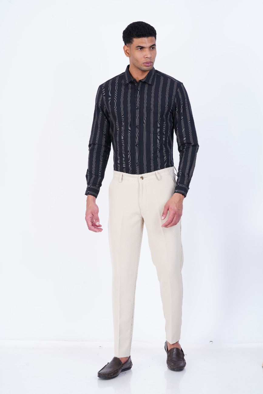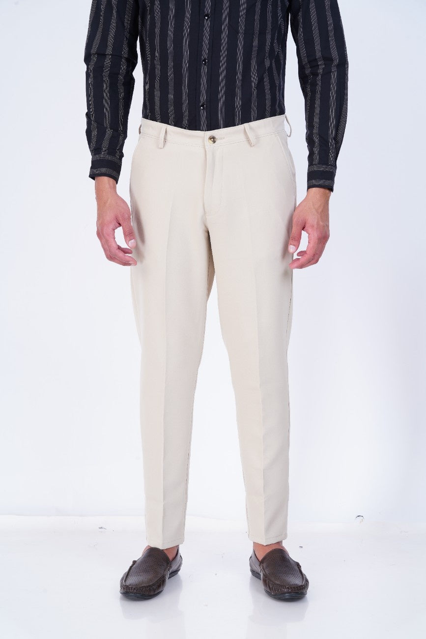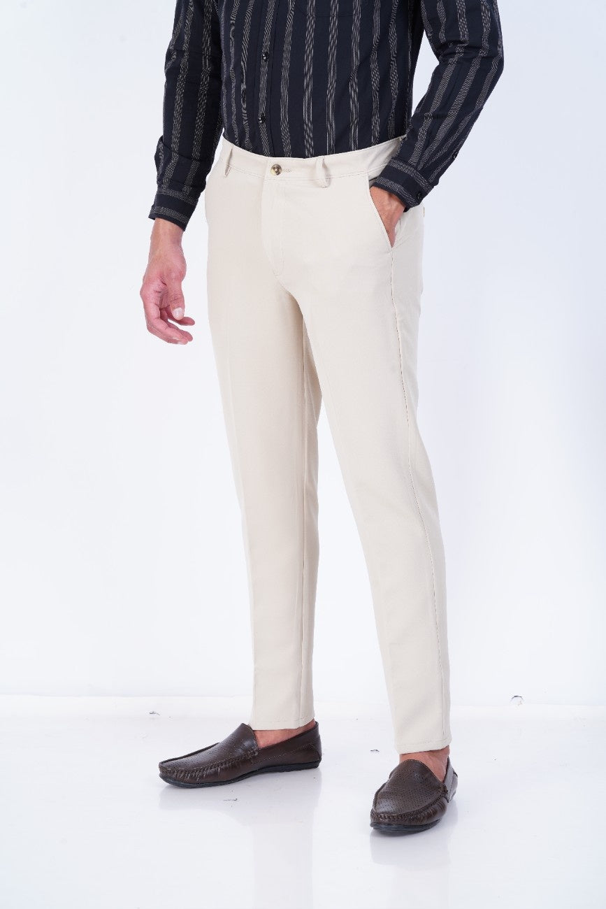 C&S Ivory Beige Slim-Fit Formal Trouser
